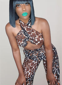 Channel major sophistication and glam in this stunning versatile wrap top. We love this top styled with our matching animal print trousers for a look that can take you from day to night.